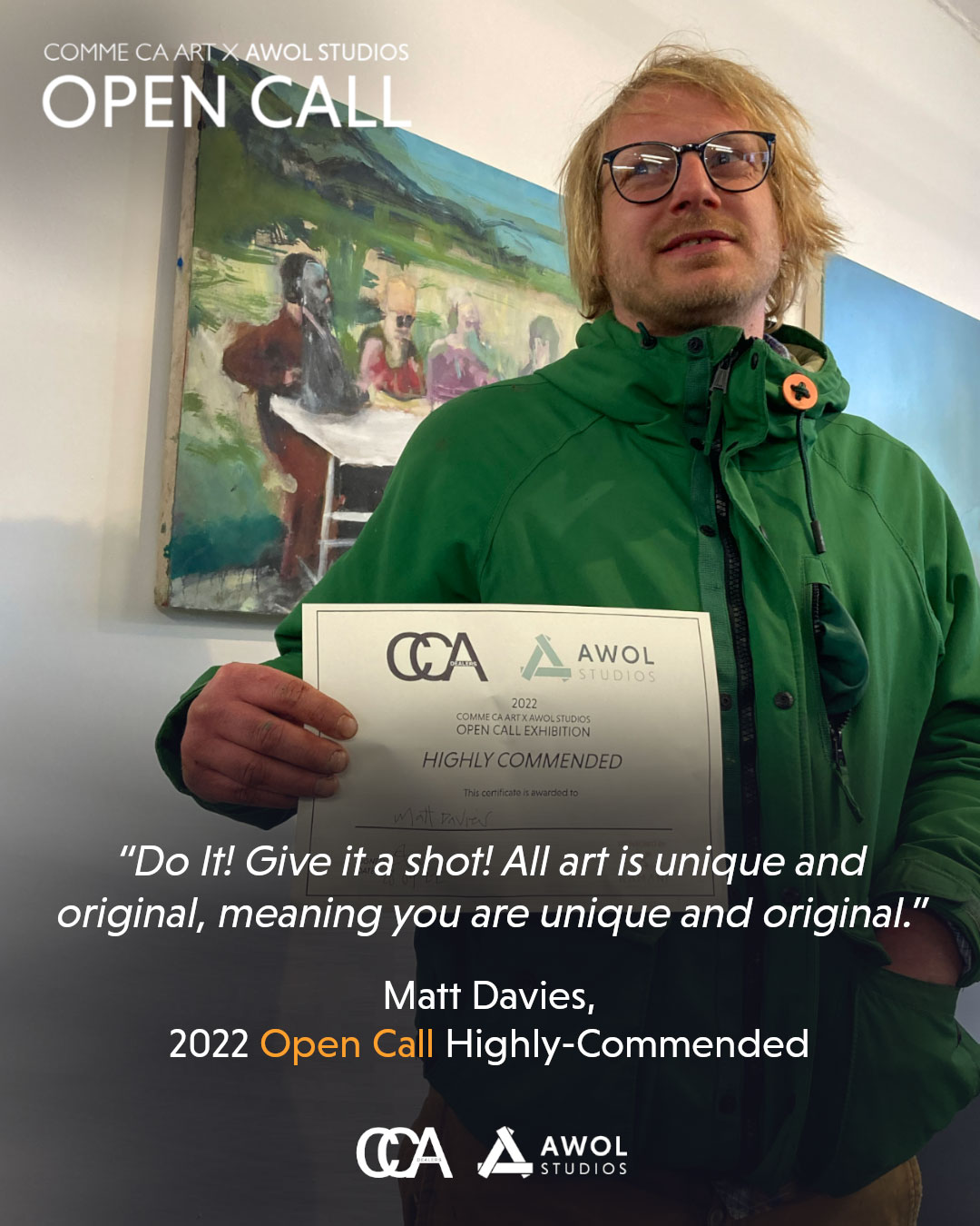 Smaller open calls with affordable entry fees are important to me as my work isn’t highly commercial so unlikely to make the fee back in immediate sales but important to get my work out there. I liked that it was specifically North West artists. It is really nice to get into the big open calls like The Manchester Open that is currently on at HOME but very easy to get lost in the sheer amount of work. At Comme Ca Art x AWOL each work chosen felt honoured and raised up. I feel the selected works in previous years have been curious, interesting works produced with a high skill level