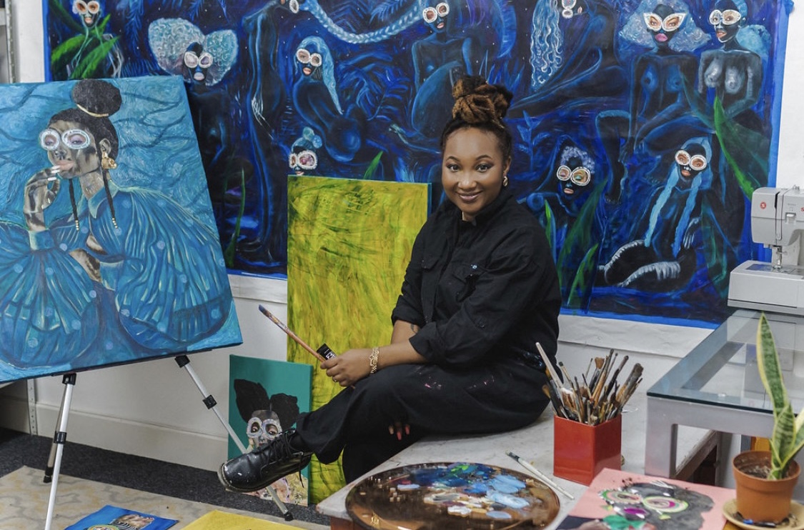 Her practice spans painting, collage, and textile-based installations that center Black female identity and memory as sites of reclamation and empowerment. Through her platform Art Affects and her community initiative, The Well, Gherdai leads workshops that integrate creative expression, mindfulness, and self-reflection to promote mental wellness and community.